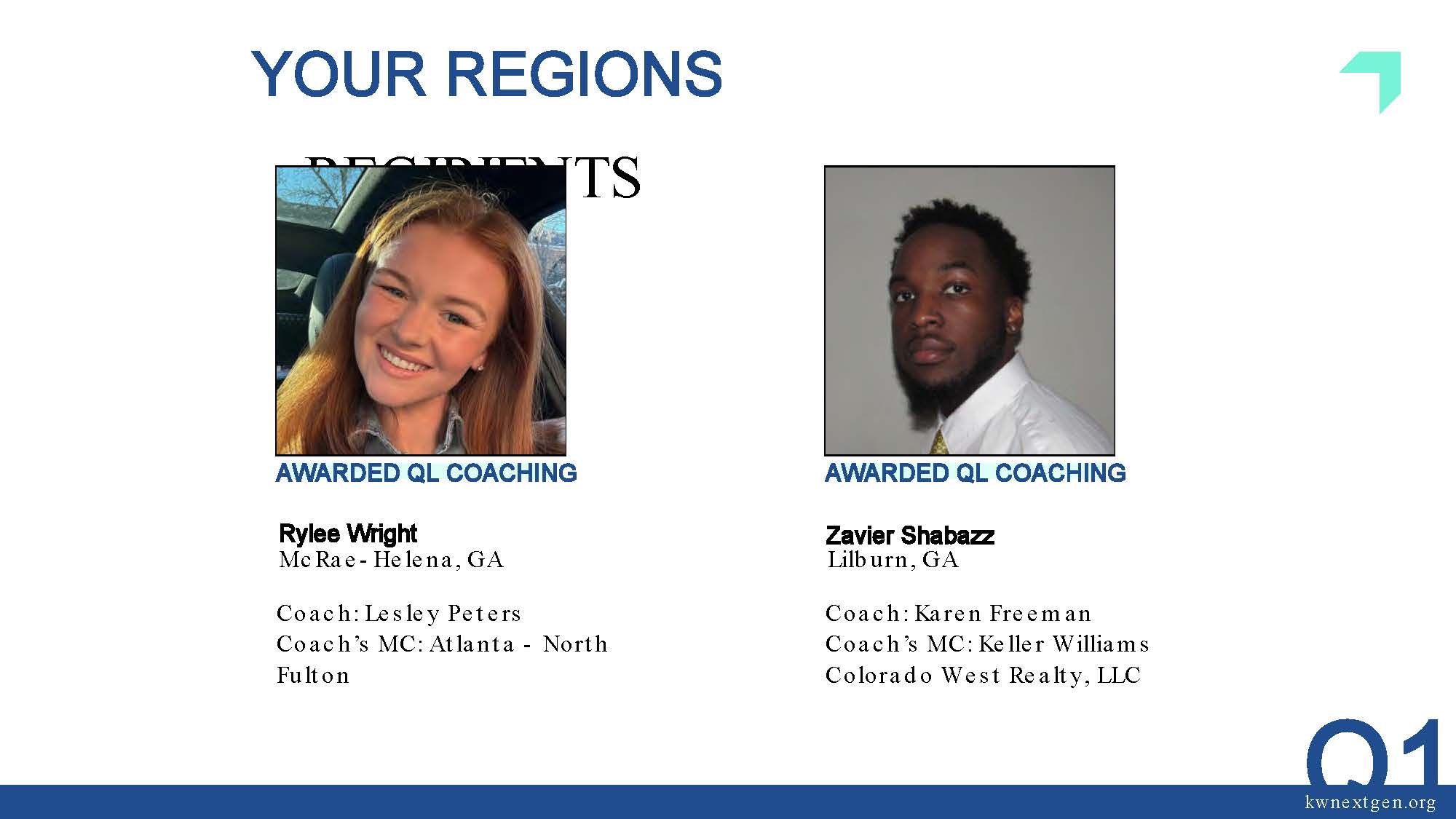 This quarter, two young adults from our Southeast region were awarded QL Coaching, receiving mentorship and leadership development through the KW NextGen program: